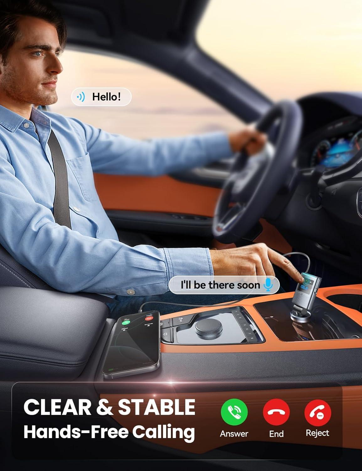 One-Click Hands-Free Call And Music Control: This product features an integrated microphone and a single button that allows you to easily answer, redial, or end calls. You can also effortlessly switch tracks and pause music using the buttons on the Bluetooth FM transmitter