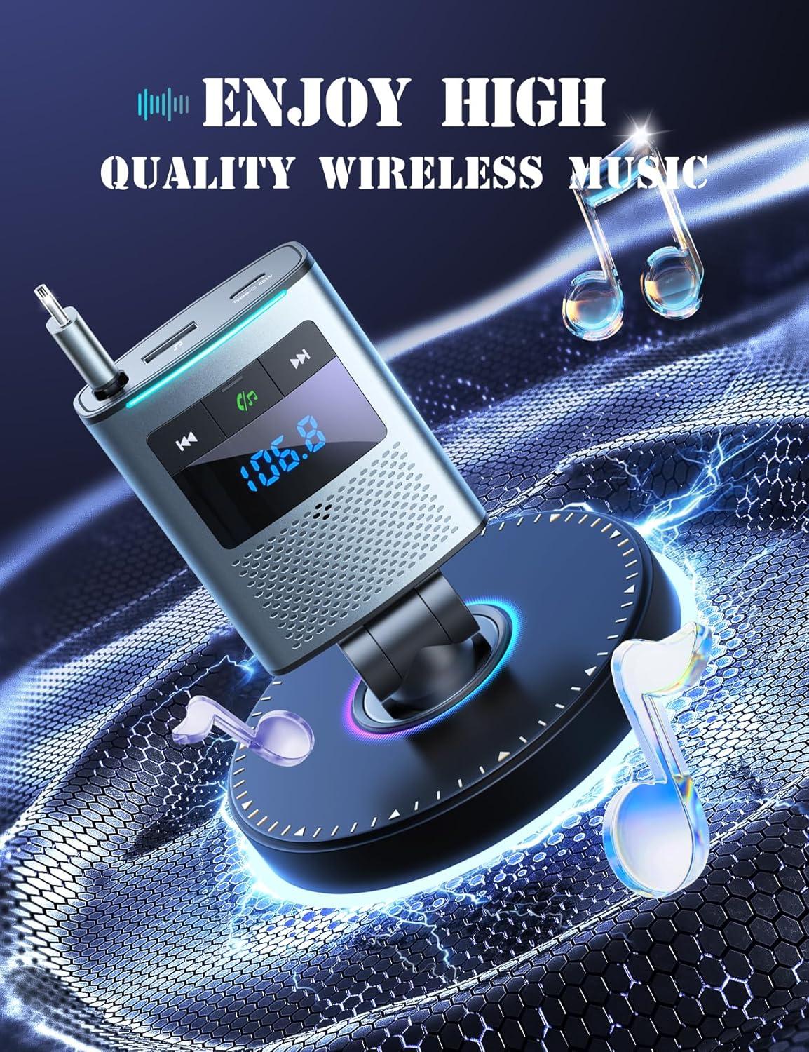 Upgraded Bluetooth 5.4 Car Adapter: This Bluetooth FM transmitter for cars features the cutting-edge Bluetooth 5.4 technology, enhancing connection speeds and data transmission by 200%. Superior sound quality—100% improvement—whether you're streaming music or listening to podcasts, which makes the transmission faster, more stable, and safer. Provide Bluetooth and U disk as two playback methods