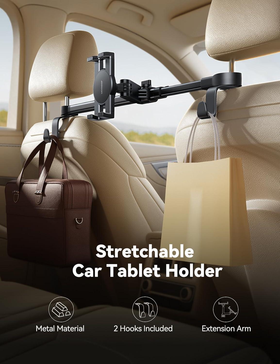 JOYROOM Car Tablet Holder Mount, [Extension Arm] ipad Headrest Stand for Back Seat, Tablet Car Mount for iPad Pro, Air, Mini, Galaxy Tab, Kindle Fire HD, Switch OLED, 4.7-13″ Devices(Black)