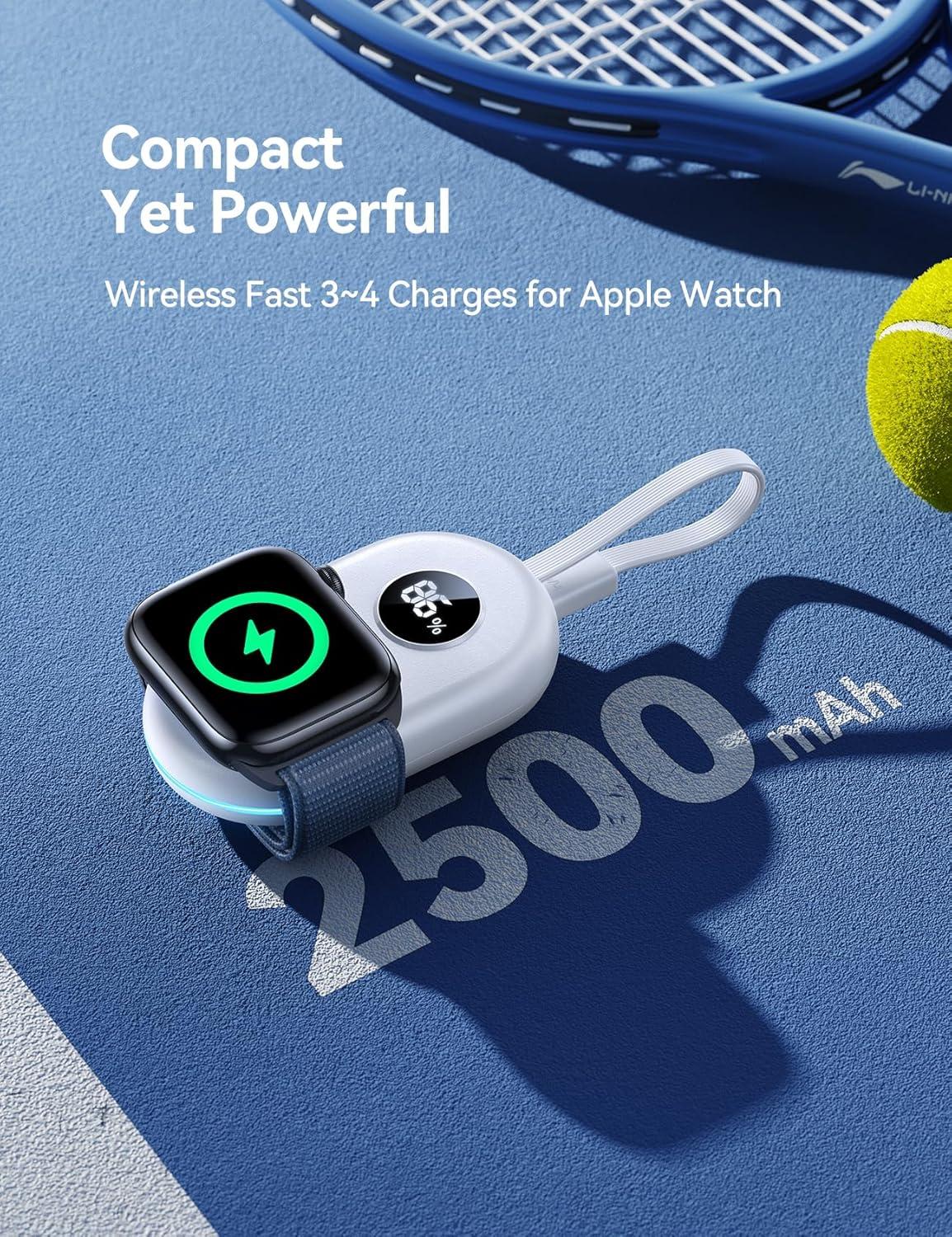 JOYROOM Portable Charger for Apple Watch 10, 2500mAh Fast Charging iWatch Charger KeyChain USB C Cable, Magnetic Wireless Travel Power Bank for Apple Watch Series 9/8/7/6/SE/5/4/3/2/Nike/Ultra/Ultra 2