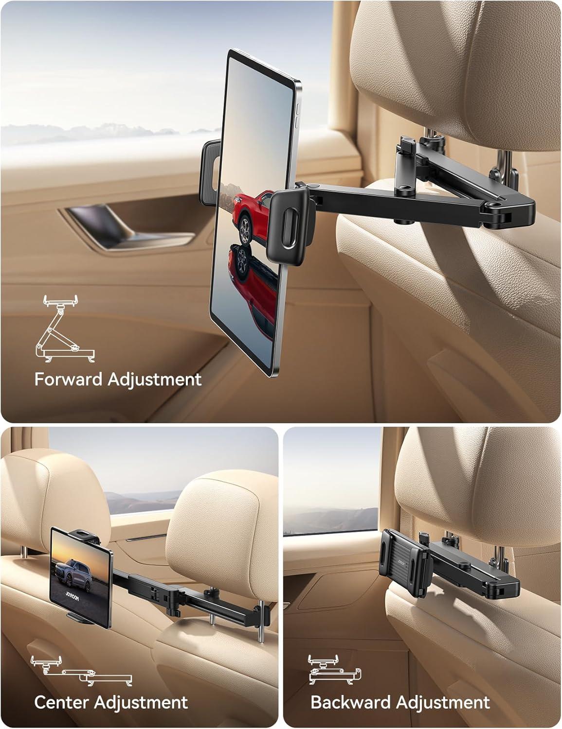 【2025 Upgrade Extension Arm Design】After 2 years of market research and experimentation, Joyroom's R&D team found that single lever tablet holder for car are prone to breakage and device instability during travel, so we designed a double ipad holder for car that greatly improves the stability and weight-bearing capacity of iPad during use, aiming to bring users a more perfect experience!