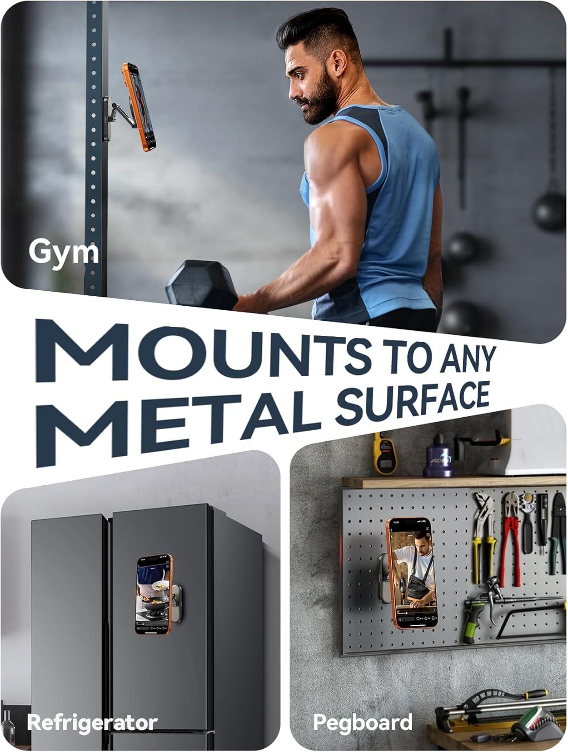 MULTI-SCENARIO USE: The magnetic phone holder for gym features powerful magnetic base securely attaches to any metal surface, Whether you're following a recipe in the kitchen, watching videos at your desk, or tracking your workout stats, the Joyroom golf cart phone holder magnetic design offers incredible convenience and flexibility for all aspects of your active life.